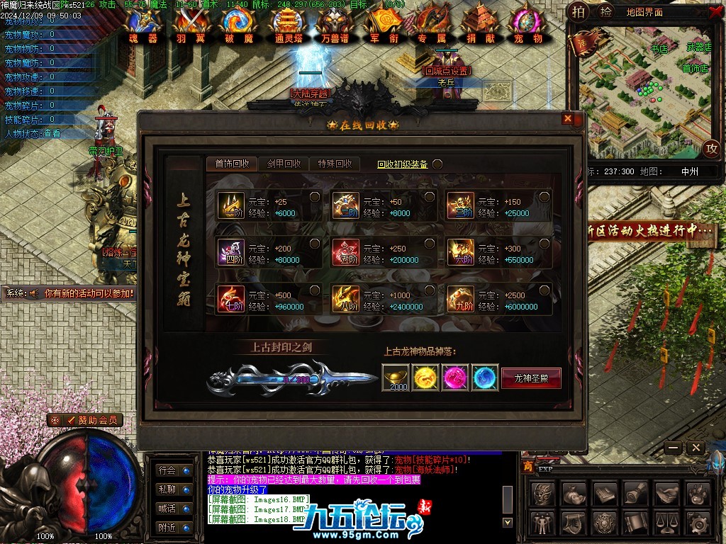2."宠物碎片","技能碎片"商铺内改为100元宝/个(原为绑元购买);