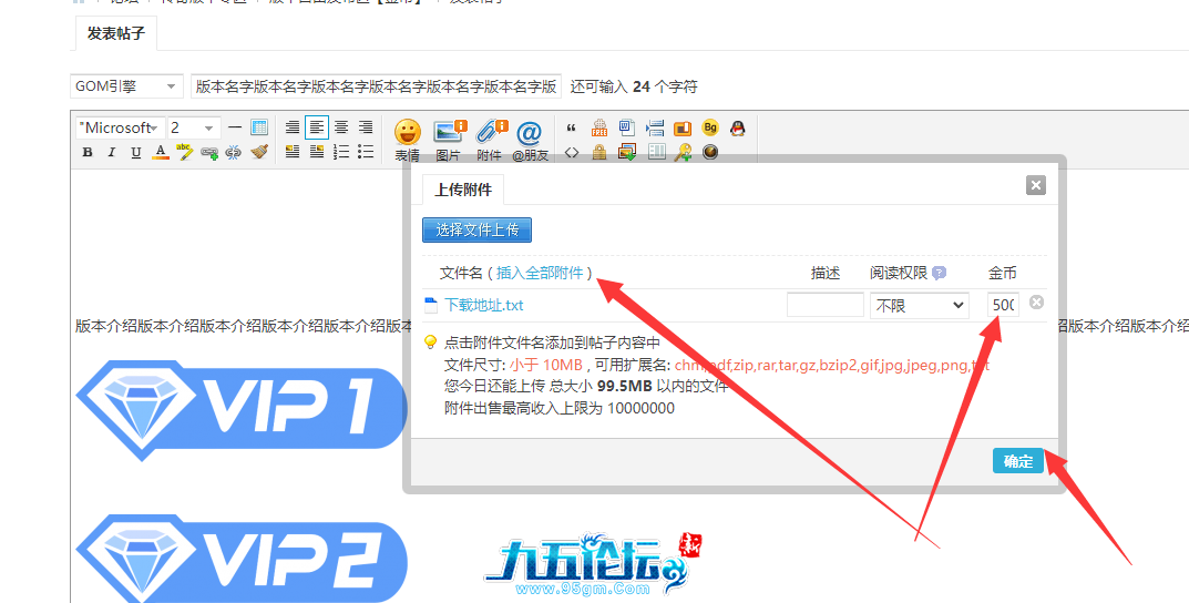 设置好对应销售价格,点击全部插入  点击确认 发帖即可